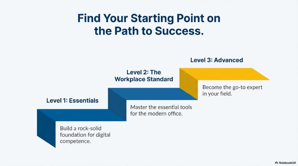 Completing all three levels gives you a well-rounded digital toolkit, elevates your career potential, and sets you apart in today’s competitive job market.