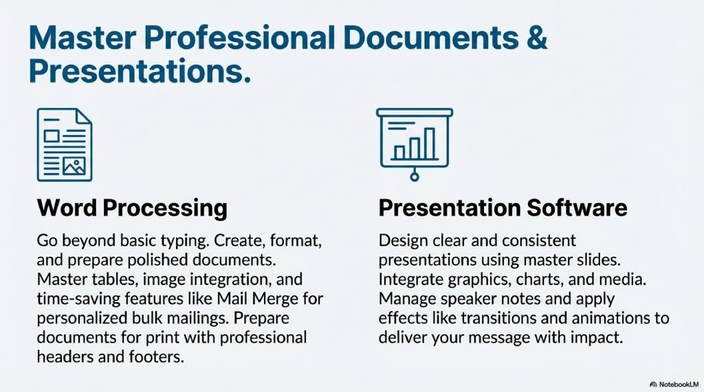 🧭 Increased Employability Proves your competency in widely used software and IT tools—making you a standout candidate.